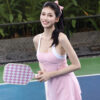 Thiết kế váy với form dáng hiện đại, điểm nhấn ở phần dây áo, nữ tính nhưng vẫn nổi bật. Có mút ngực tháo rời, quần bảo hộ giúp thoải mái khi chơi thể thao.