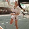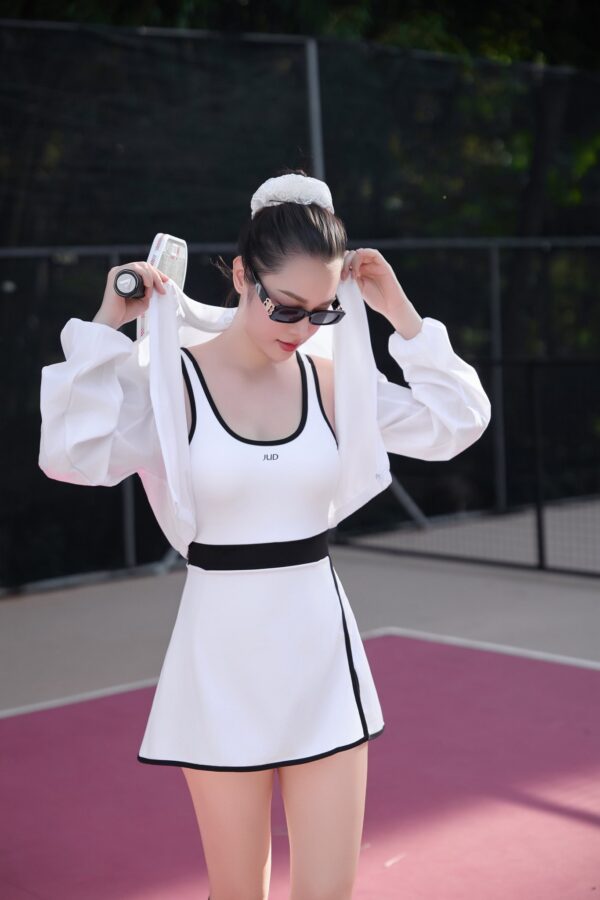 Đường cắt tinh giản, viền đen tạo điểm nhấn, dáng A-line dễ mặc và tôn dáng. Thiết kế eo cao tạo hiệu ứng đôi chân dài miên man. Chất liệu co giãn, dày dặn, lót quần bảo hộ liền và mút ngực rời, giúp nàng chơi hết mình mà vẫn tự tin hết mình.