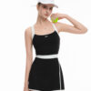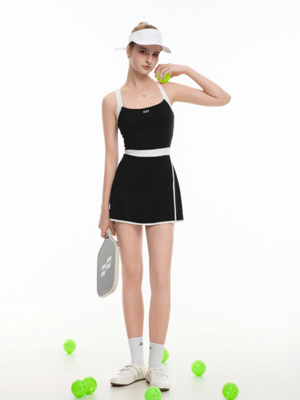 Best item for Pickleball. Đường cắt tinh giản, viền trằng tạo điểm nhấn, dáng A-line dễ mặc và tôn dáng. Thiết kế eo cao tạo hiệu ứng dài chân. Chất liệu co giãn, dày dặn, lót quần bảo hộ liền và mút ngực rời, giúp nàng chơi hết mình mà vẫn tự tin hết mình.