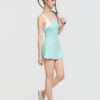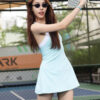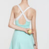 Thiết kế váy với form dáng hiện đại, điểm nhấn ở phần dây áo, nữ tính nhưng vẫn nổi bật. Có mút ngực tháo rời, quần bảo hộ giúp thoải mái khi chơi thể thao.