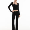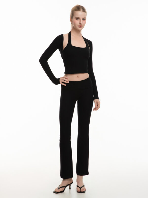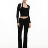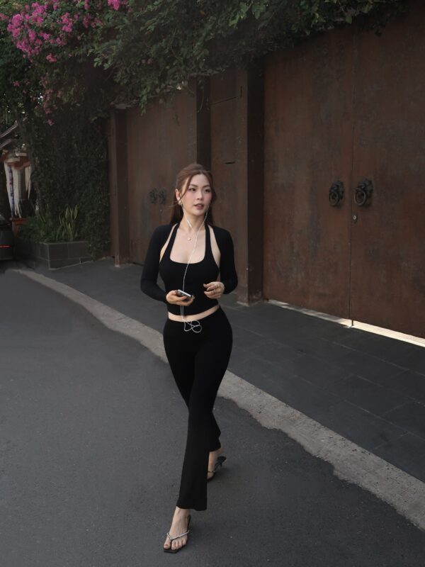 Mang phom dáng thoải mái, linh hoạt cho các hoạt động hằng ngày. Thiết kế quần ống loe giúp tạo hiệu ứng kéo dài chân, đồng thời có thể mặc theo dáng cạp thấp hoặc cạp vừa tùy phong cách và nhu cầu sử dụng.